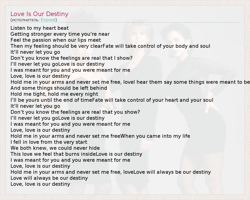 А как ты думаешь, о чем песня "Love Is Our Destiny" ?
