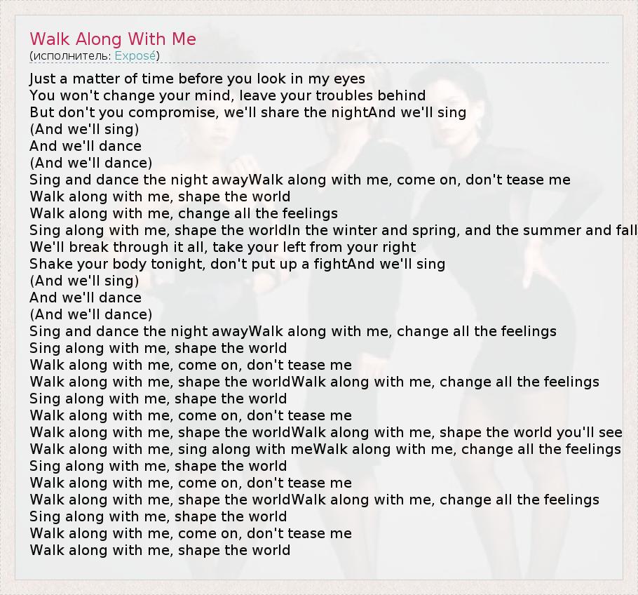 А как ты думаешь, о чем песня "Walk Along With Me" ?