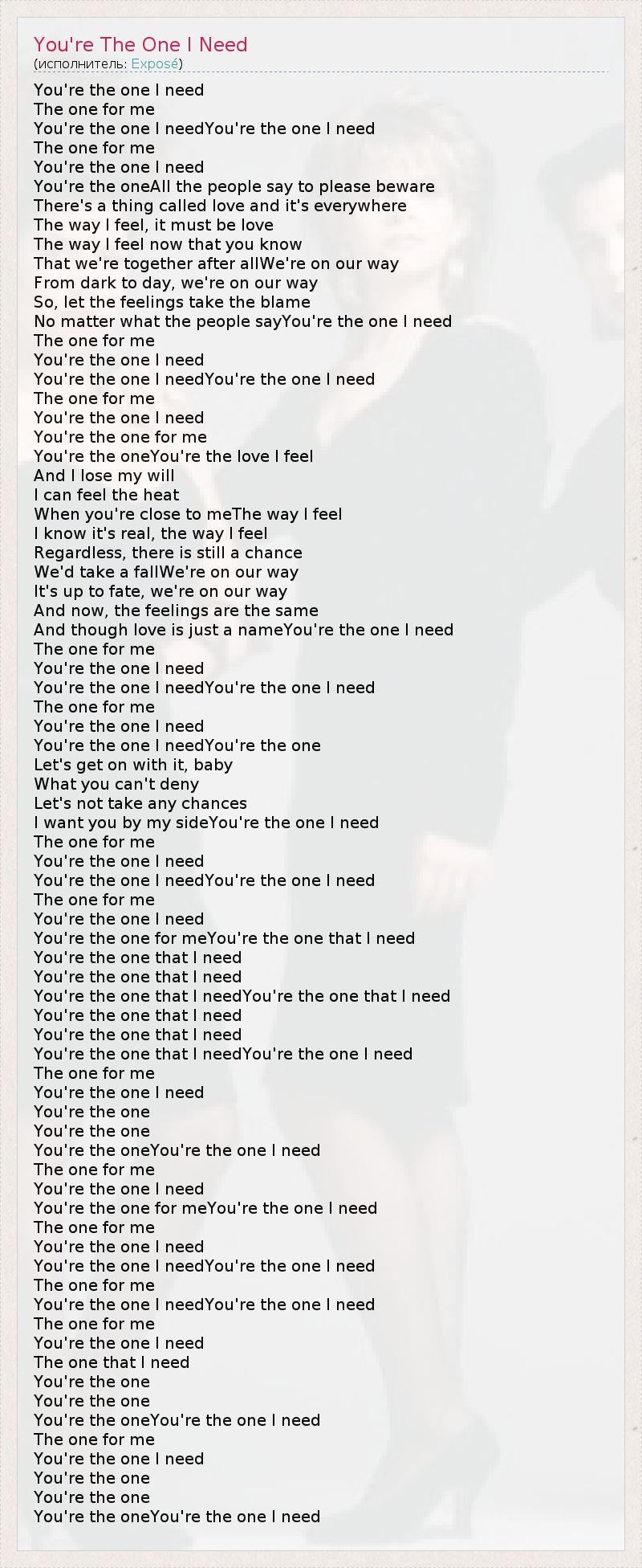 ГлавнаяИсполнителиExposéYou're The One I Need