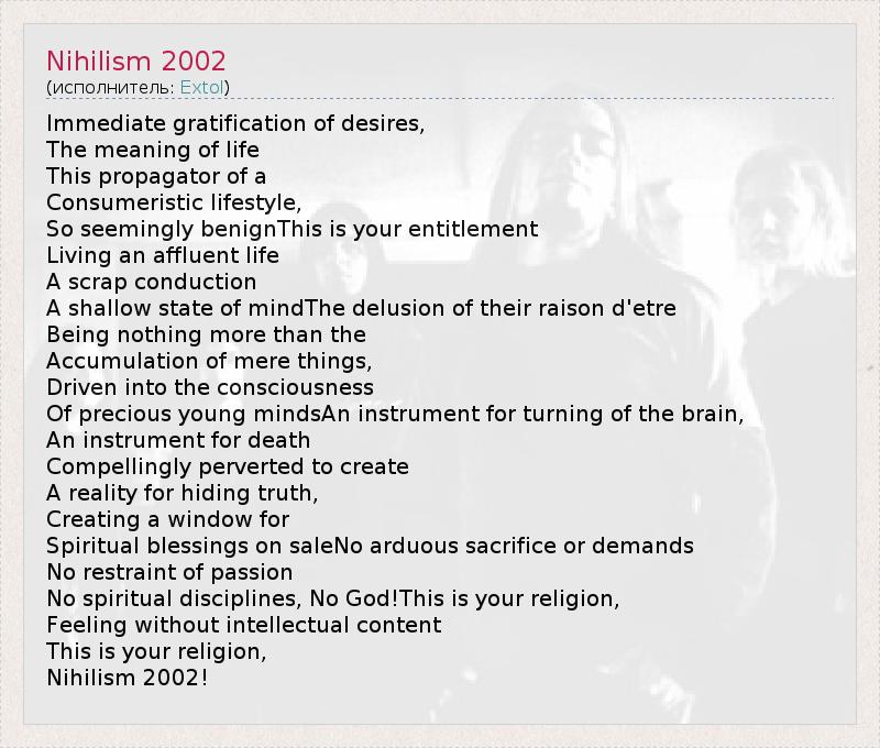 А как ты думаешь, о чем песня "Nihilism 2002" ?