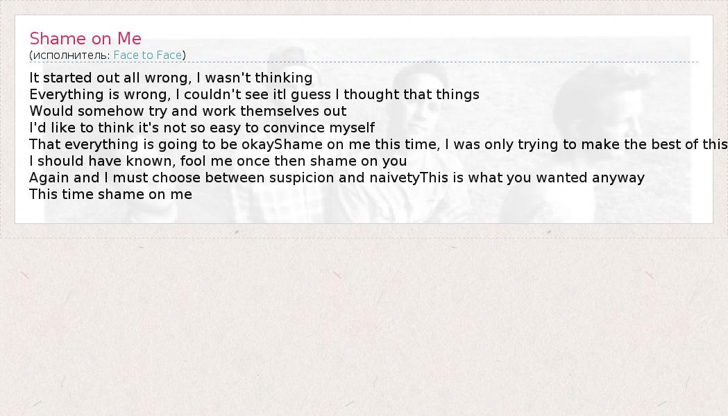 А как ты думаешь, о чем песня "Shame on Me" ?