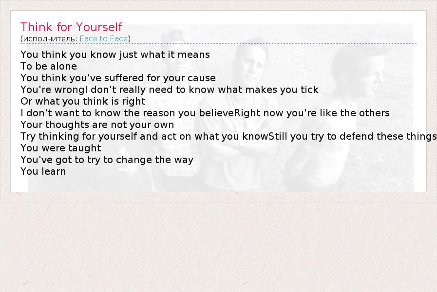 А как ты думаешь, о чем песня "Think for Yourself" ?