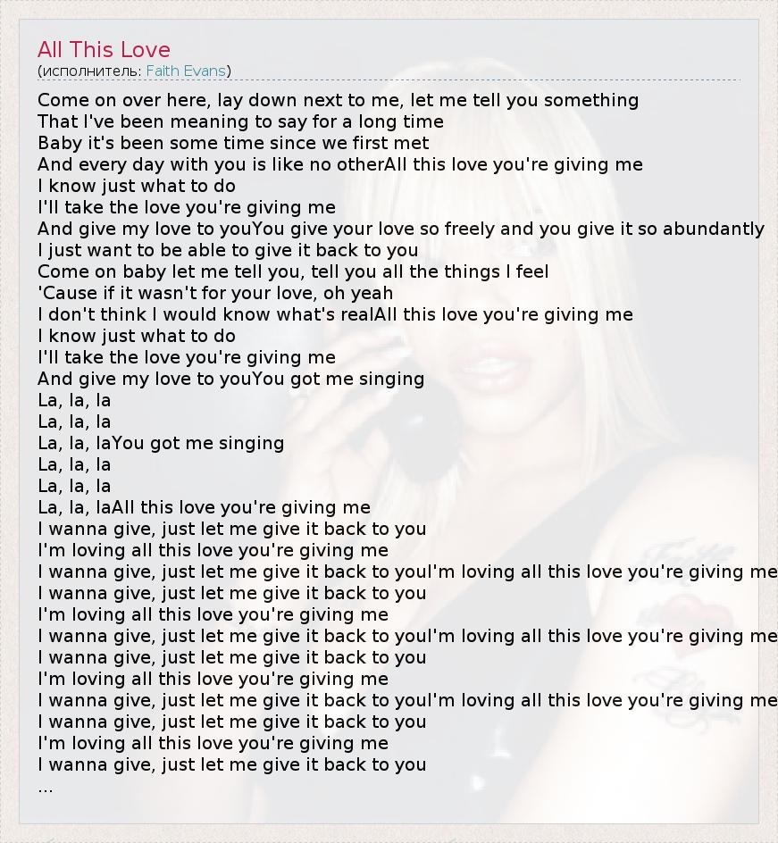 I wanna give, just let me give it back to youI'm loving all this love you're giving me