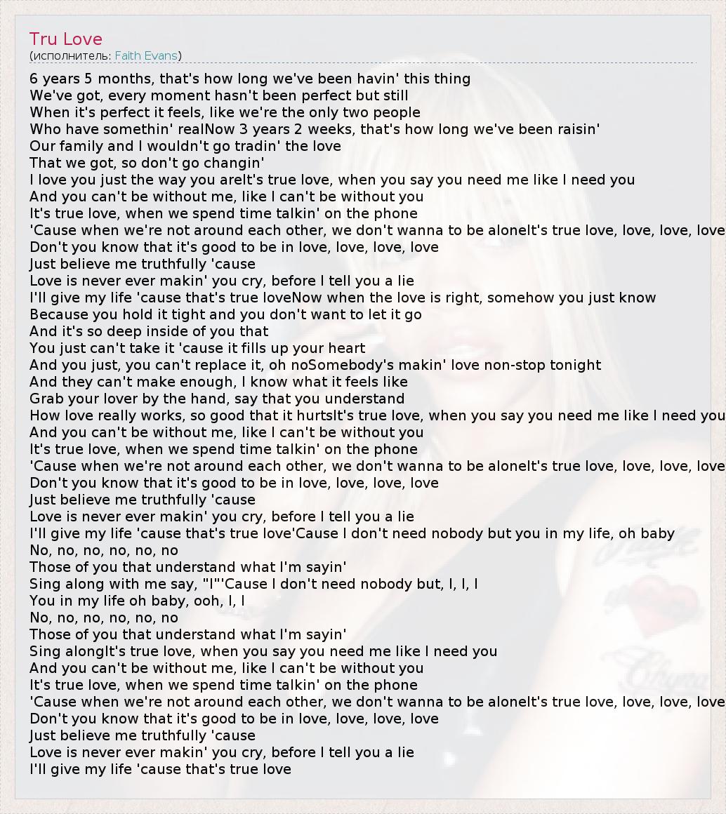 А как ты думаешь, о чем песня "Tru Love" ?
