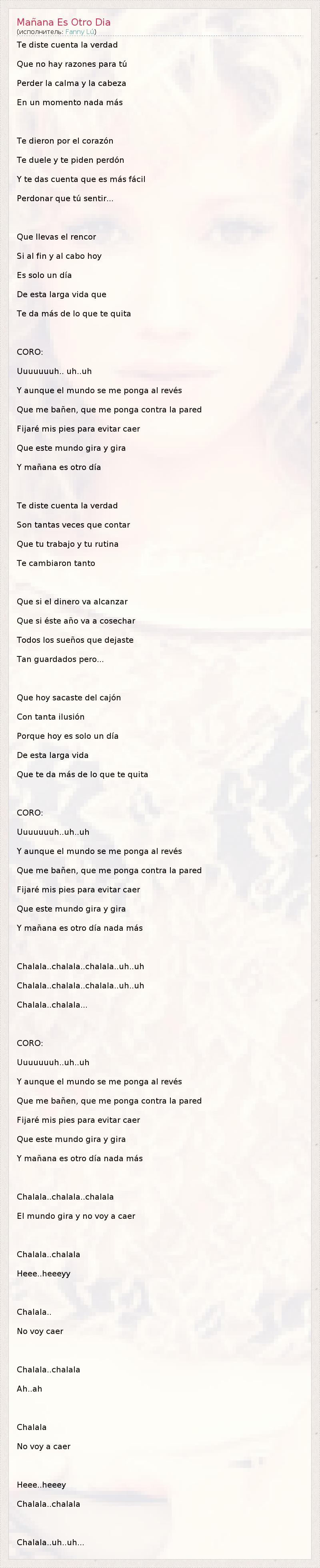 А как ты думаешь, о чем песня "Mañana Es Otro Dia" ?