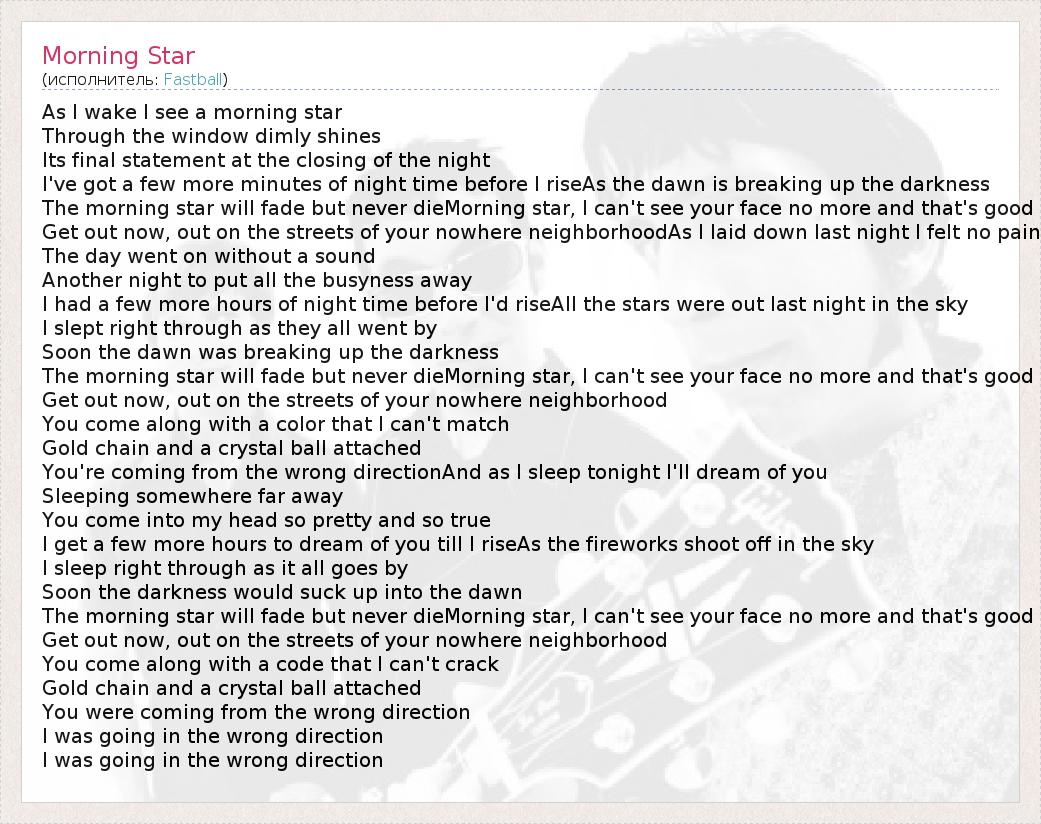 А как ты думаешь, о чем песня "Morning Star" ?