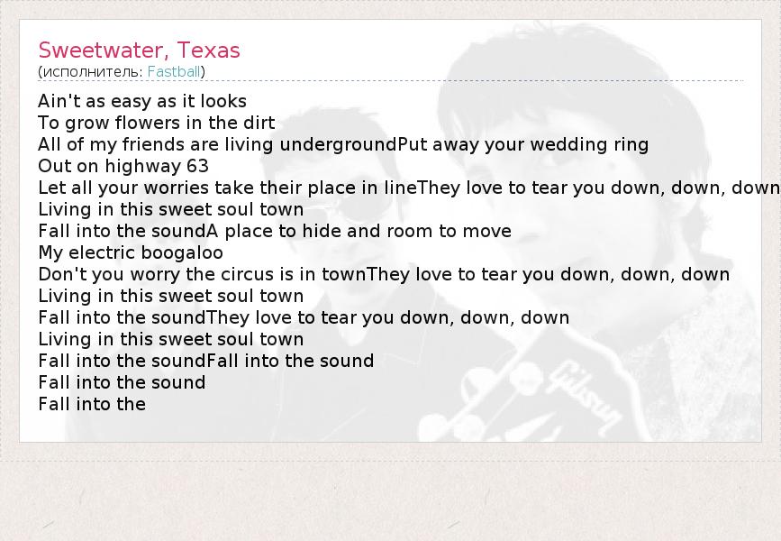 А как ты думаешь, о чем песня "Sweetwater, Texas" ?