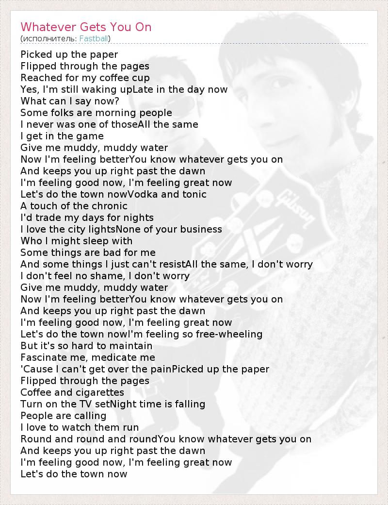 А как ты думаешь, о чем песня "Whatever Gets You On" ?