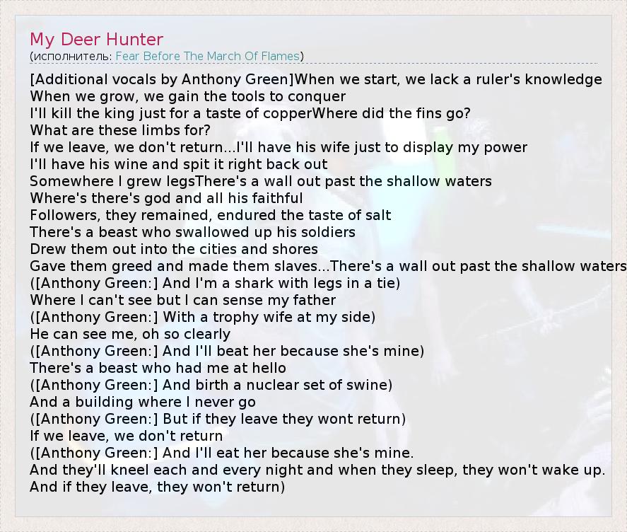 А как ты думаешь, о чем песня "My Deer Hunter" ?