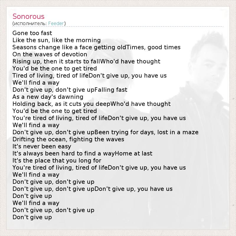 Это интересно:Feeder - бритрок-группа из Южного Уэльса. Образована в 1995 году двумя старыми друзьями - вокалистом Грантом Николасом и ударником Джоном Ли. Чуть позже к группе примкнул Така Хиросе, японец по происхождению. После выпуска двух демо-альбомов Two Colours (1995) и Swim (1996) ребята приглянулись лейблу Echo Records. Подписав контракт с Echo, Feeder стали записывать дебютный альбом Polythene. Не сказать, что слишком удачный,... продолжение