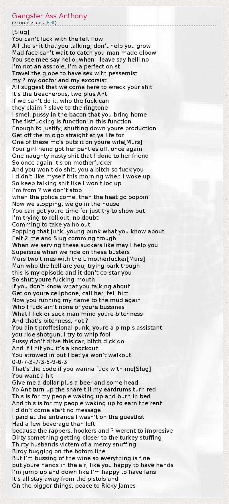 ГлавнаяИсполнителиFeltGangster Ass Anthony