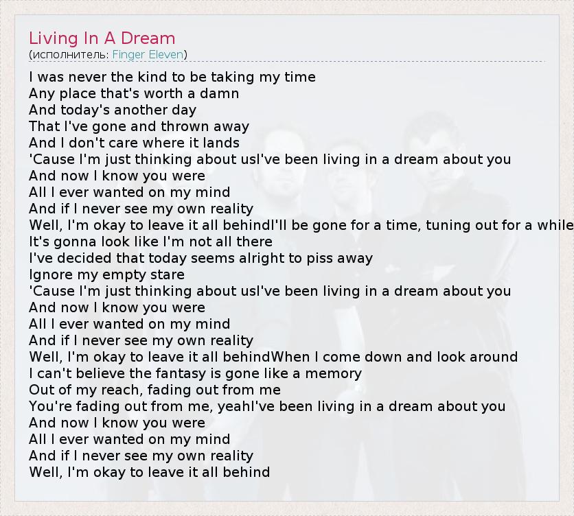 А как ты думаешь, о чем песня "Living In A Dream" ?