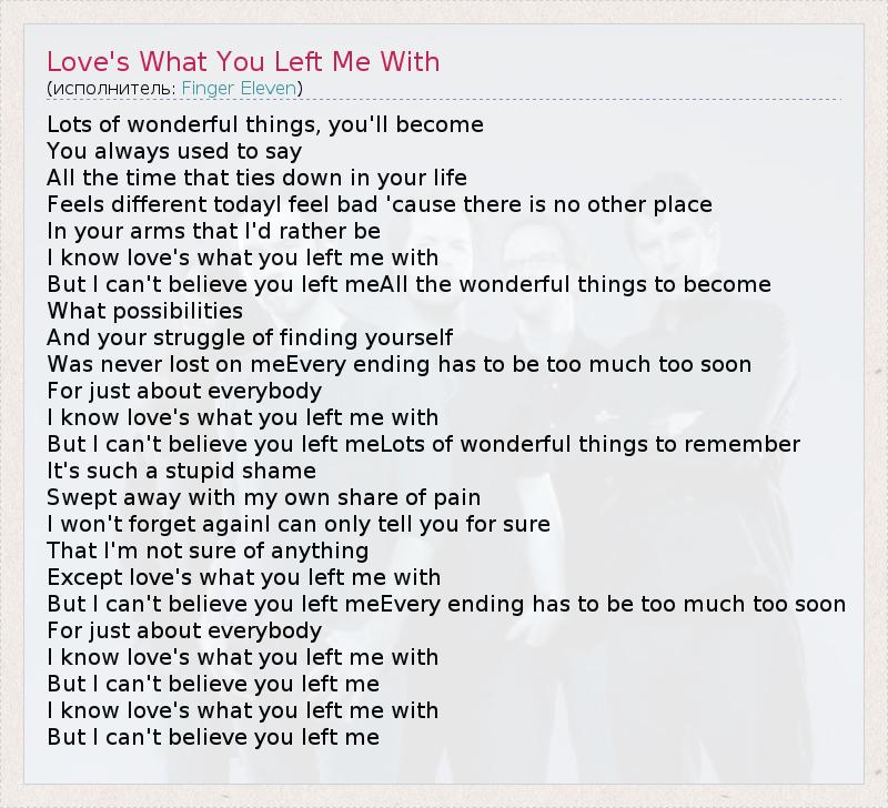 ГлавнаяИсполнителиFinger ElevenLove's What You Left Me With