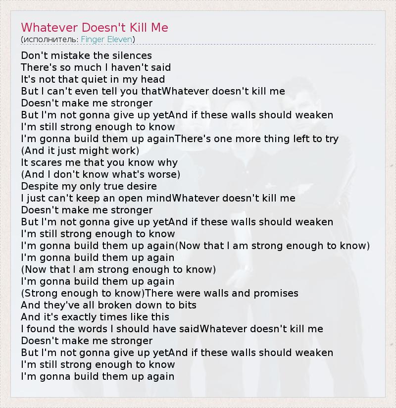 ГлавнаяИсполнителиFinger ElevenWhatever Doesn't Kill Me