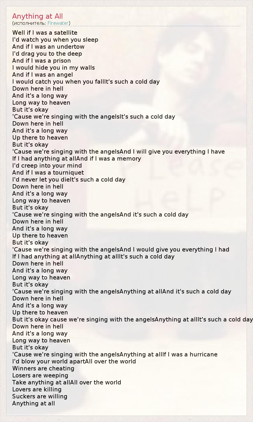 А как ты думаешь, о чем песня "Anything at All" ?