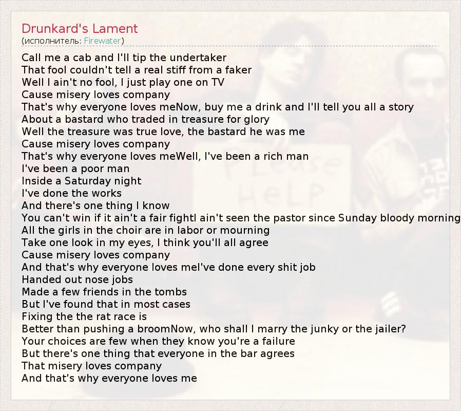 А как ты думаешь, о чем песня "Drunkard's Lament" ?
