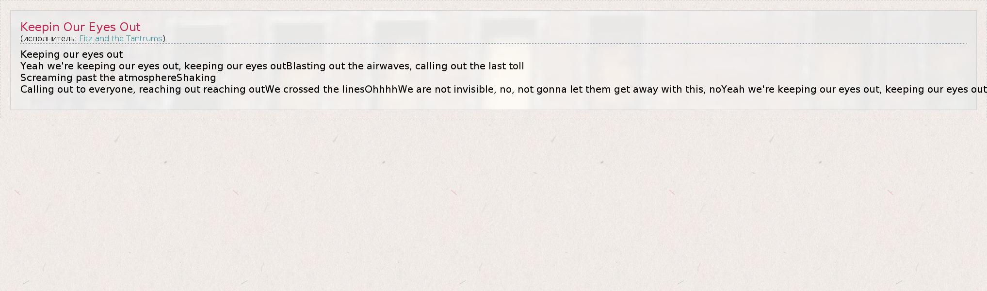 А как ты думаешь, о чем песня "Keepin Our Eyes Out" ?