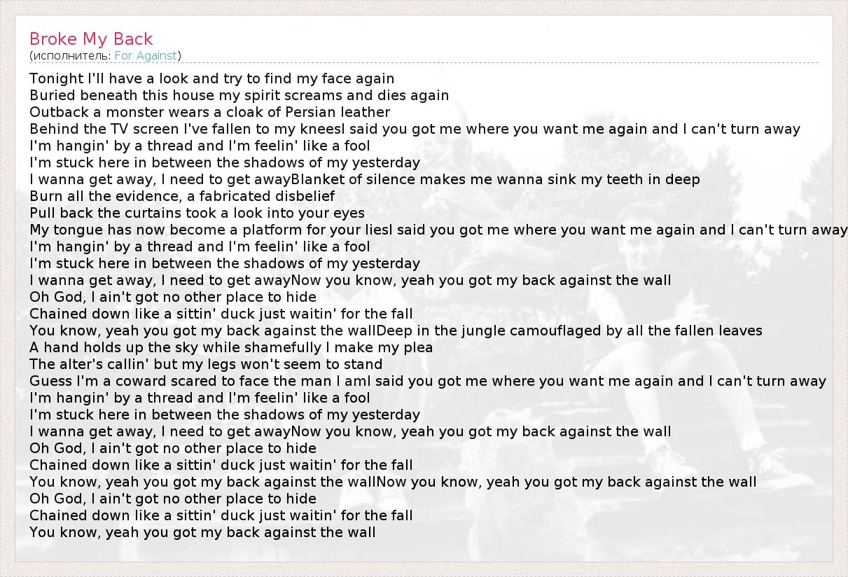 А как ты думаешь, о чем песня "Broke My Back" ?