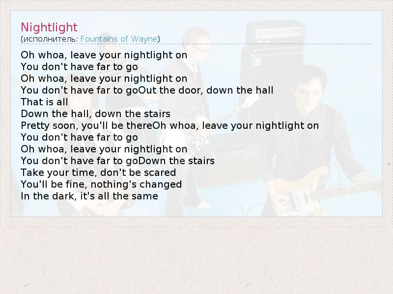 Pretty soon, you'll be thereOh whoa, leave your nightlight on