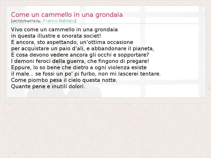 А как ты думаешь, о чем песня "Come un cammello in una grondaia" ?