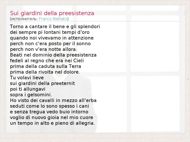 А как ты думаешь, о чем песня "Sui giardini della preesistenza" ?