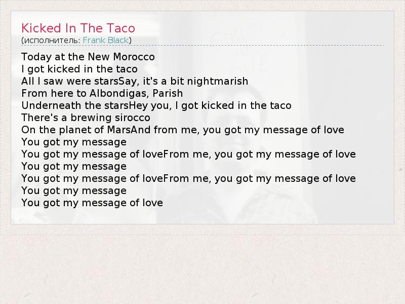 А как ты думаешь, о чем песня "Kicked In The Taco" ?