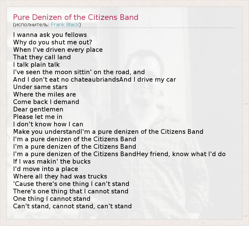 ГлавнаяИсполнителиFrank BlackPure Denizen of the Citizens Band