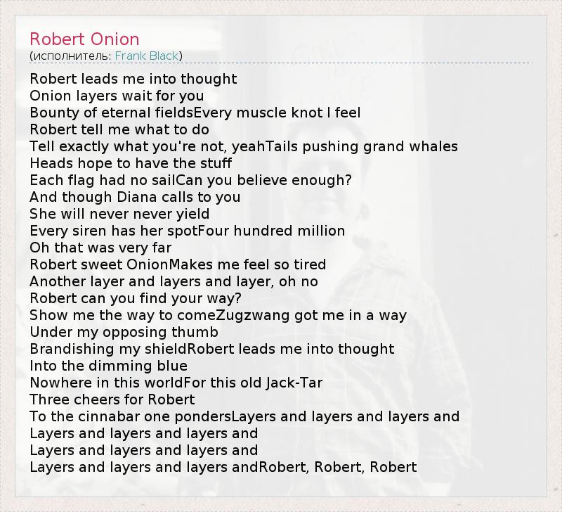 А как ты думаешь, о чем песня "Robert Onion" ?