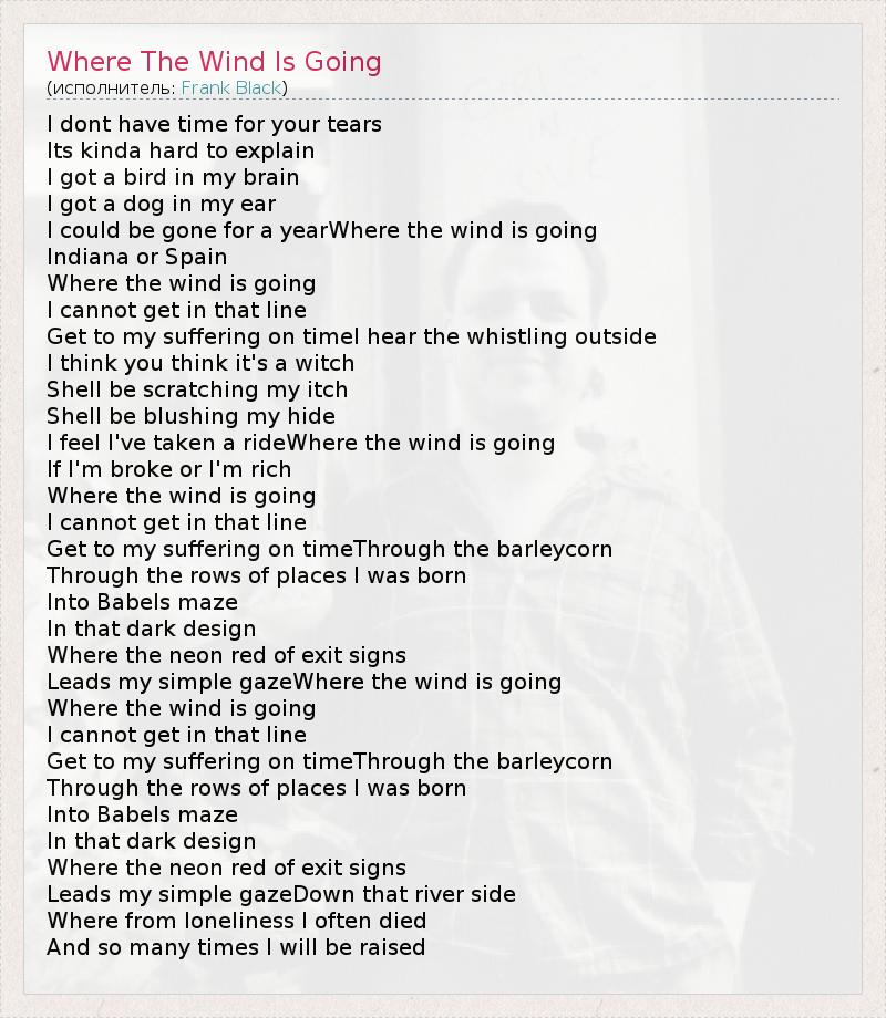 ГлавнаяИсполнителиFrank BlackWhere The Wind Is Going