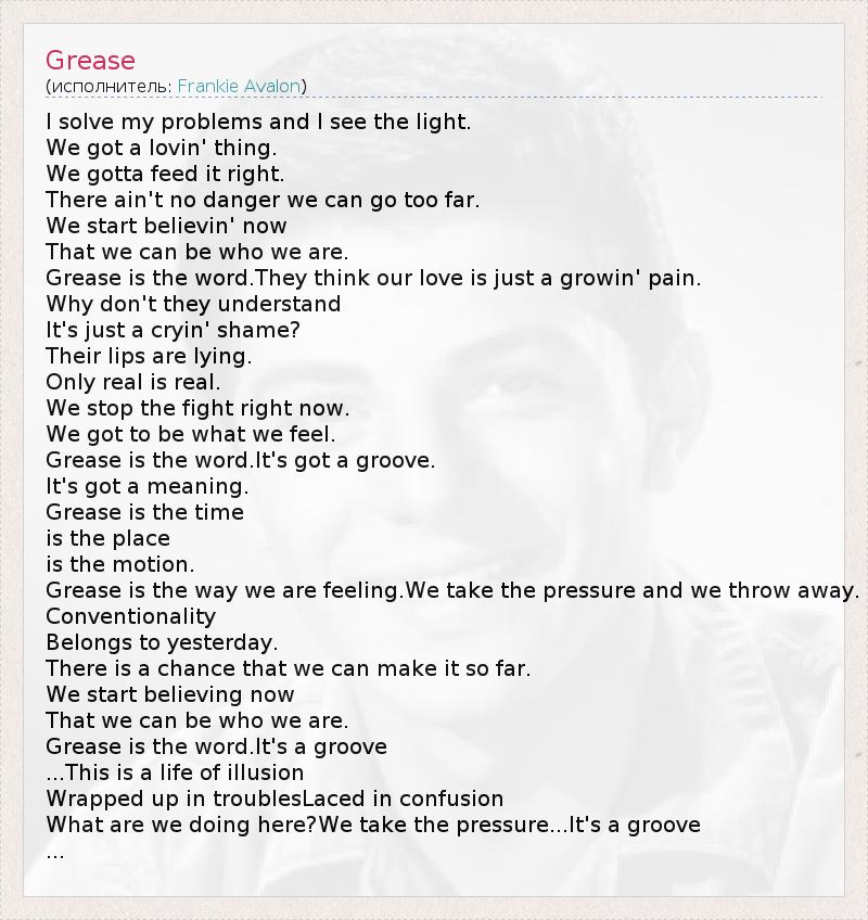 А как ты думаешь, о чем песня "Grease" ?