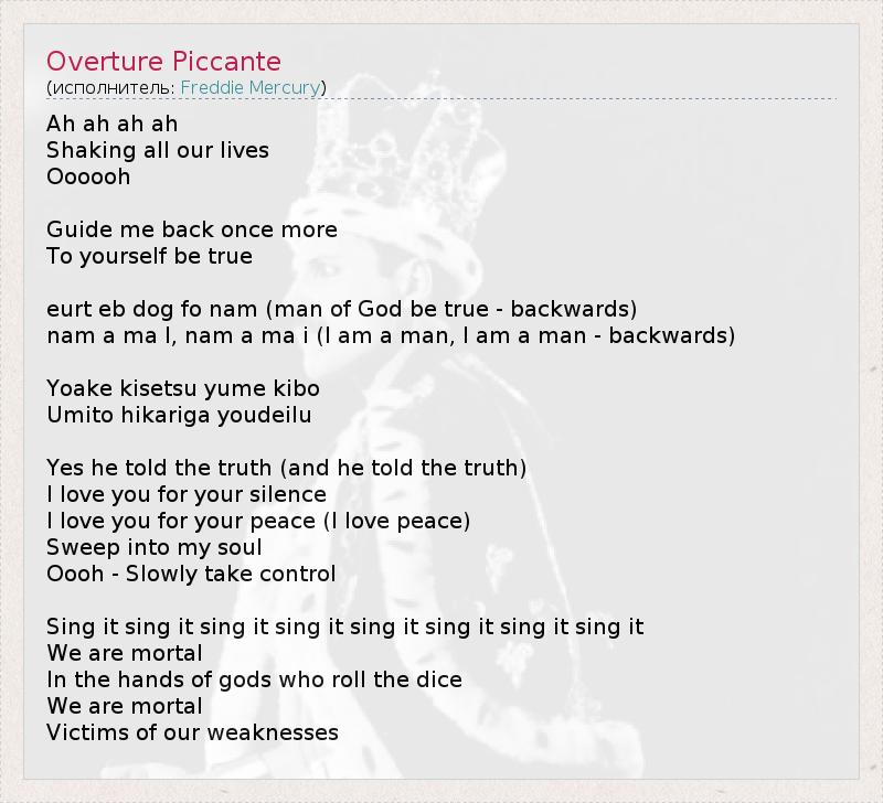 А как ты думаешь, о чем песня "Overture Piccante" ?