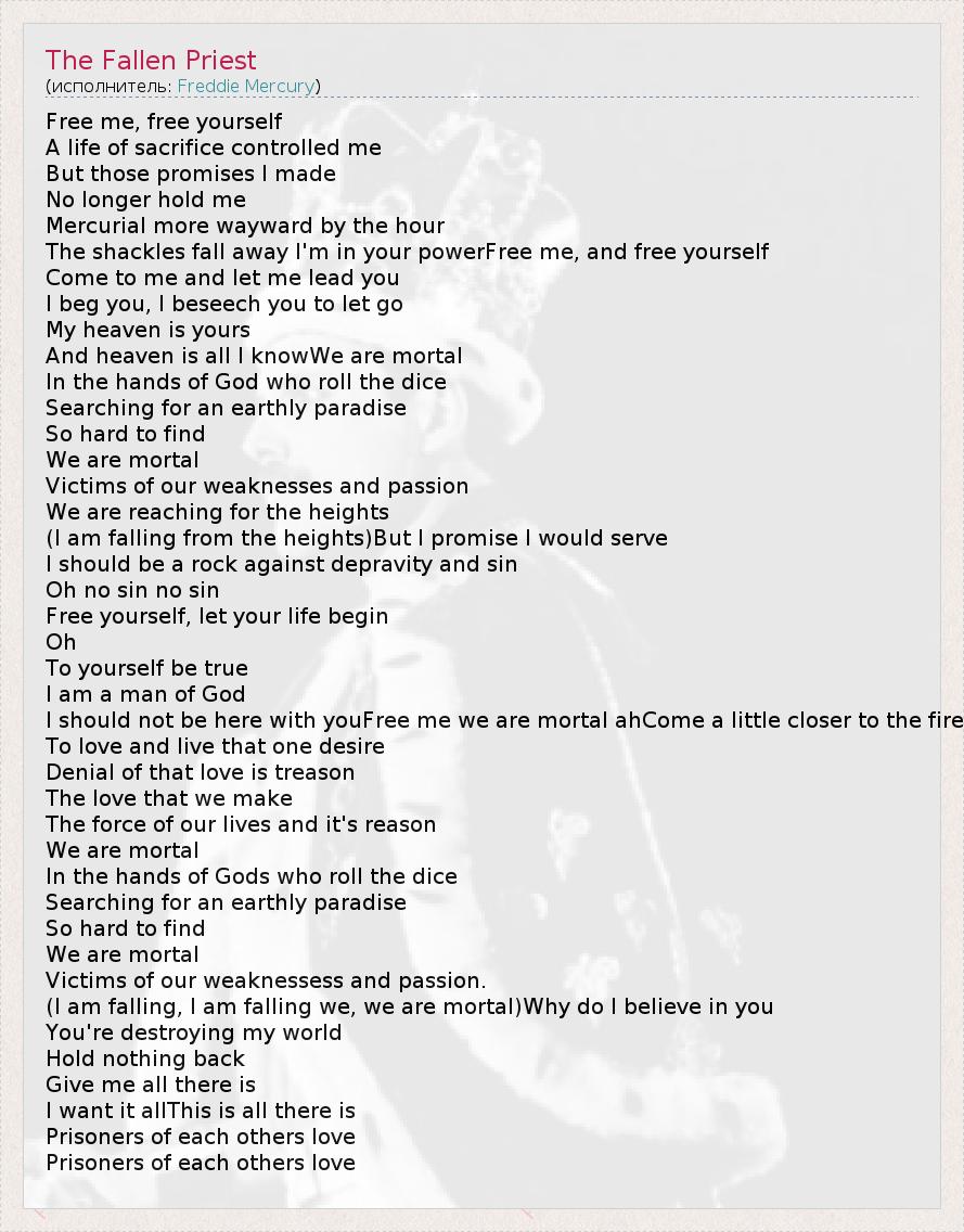 А как ты думаешь, о чем песня "The Fallen Priest" ?