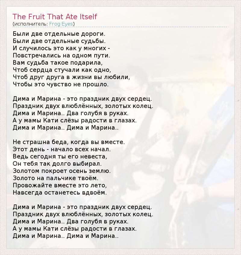 А как ты думаешь, о чем песня "The Fruit That Ate Itself" ?