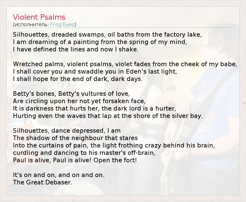 А как ты думаешь, о чем песня "Violent Psalms" ?