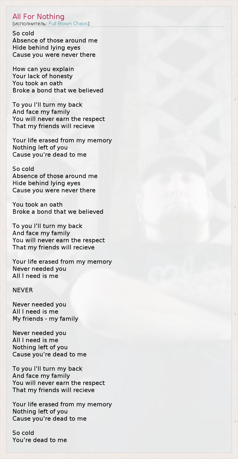 А как ты думаешь, о чем песня "All For Nothing" ?