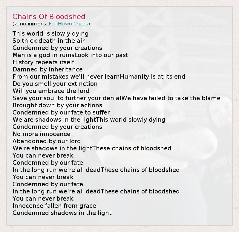 А как ты думаешь, о чем песня "Chains Of Bloodshed" ?
