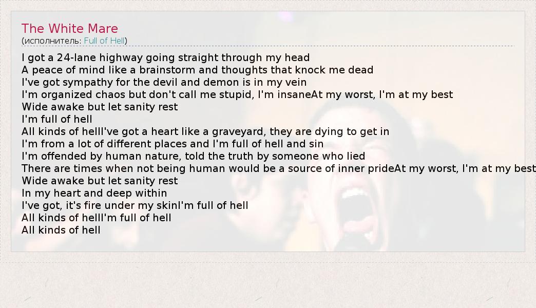 All kinds of hellI've got a heart like a graveyard, they are dying to get in