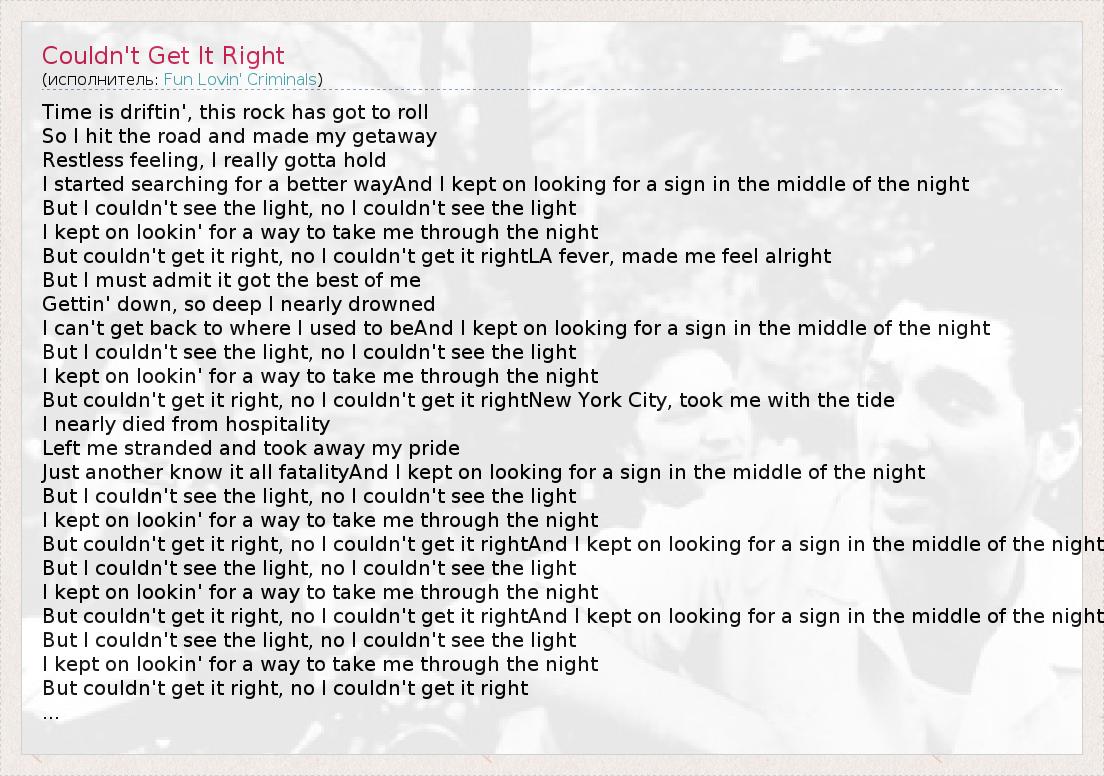 А как ты думаешь, о чем песня "Couldn't Get It Right" ?
