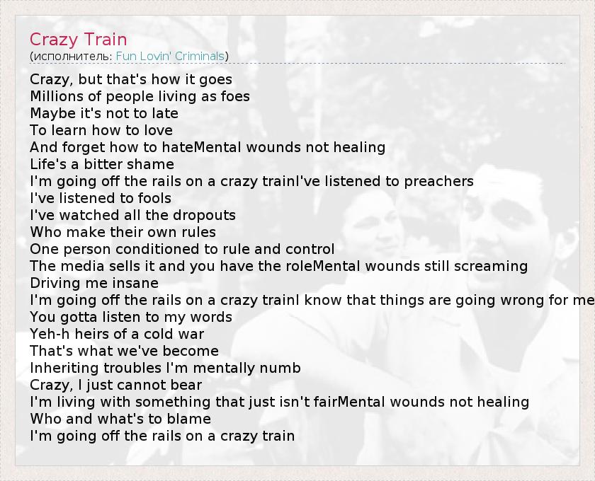 А как ты думаешь, о чем песня "Crazy Train" ?