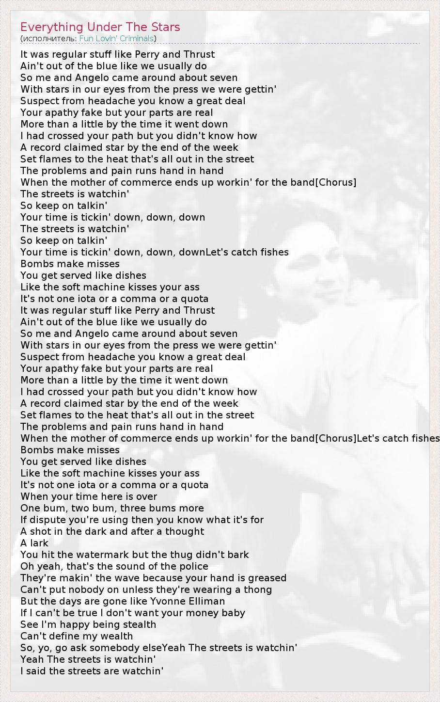 А как ты думаешь, о чем песня "Everything Under The Stars" ?