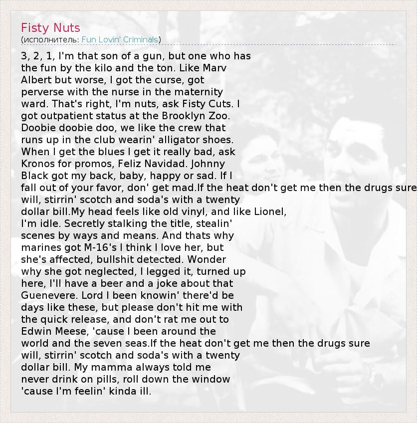 А как ты думаешь, о чем песня "Fisty Nuts" ?