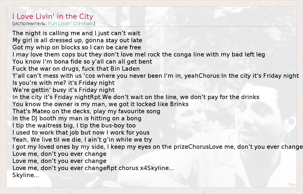 А как ты думаешь, о чем песня "I Love Livin' in the City" ?