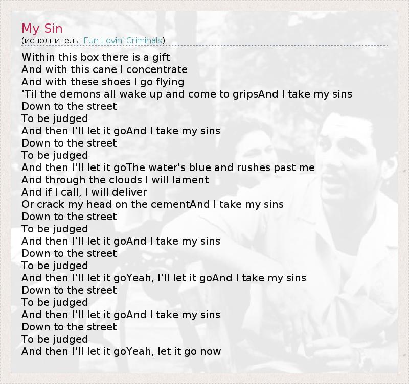 And then I'll let it goYeah, I'll let it goAnd I take my sins