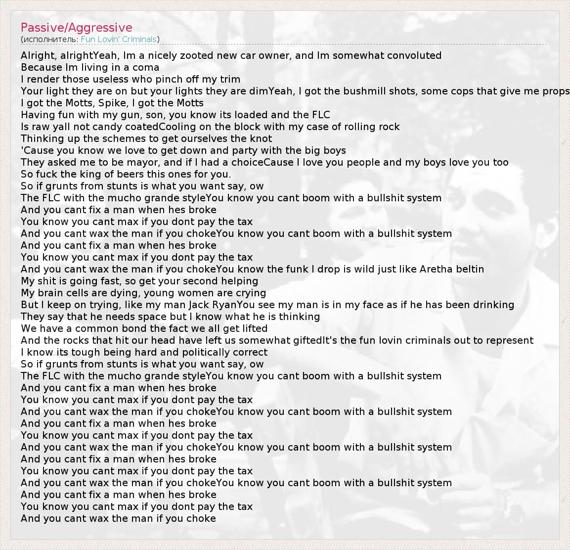 А как ты думаешь, о чем песня "Passive/Aggressive" ?