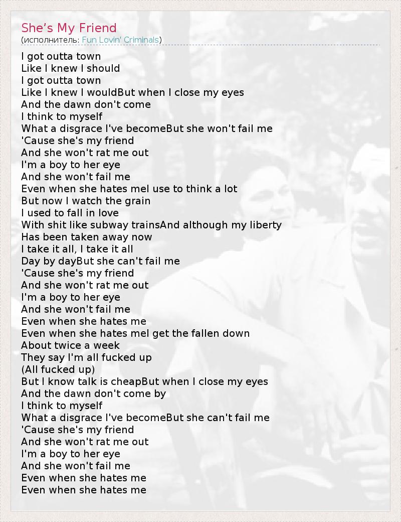 А как ты думаешь, о чем песня "She’s My Friend" ?