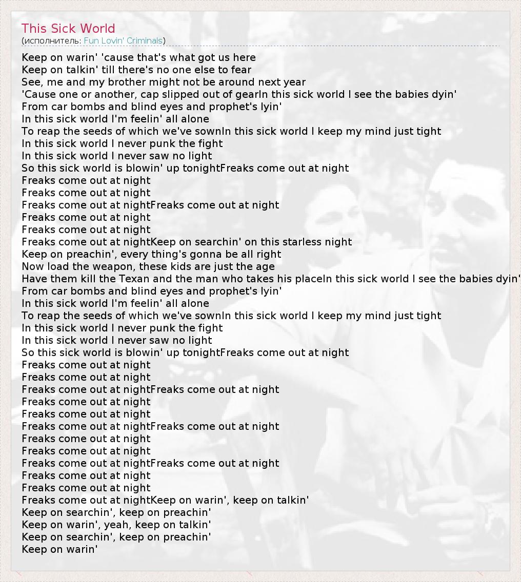 А как ты думаешь, о чем песня "This Sick World" ?