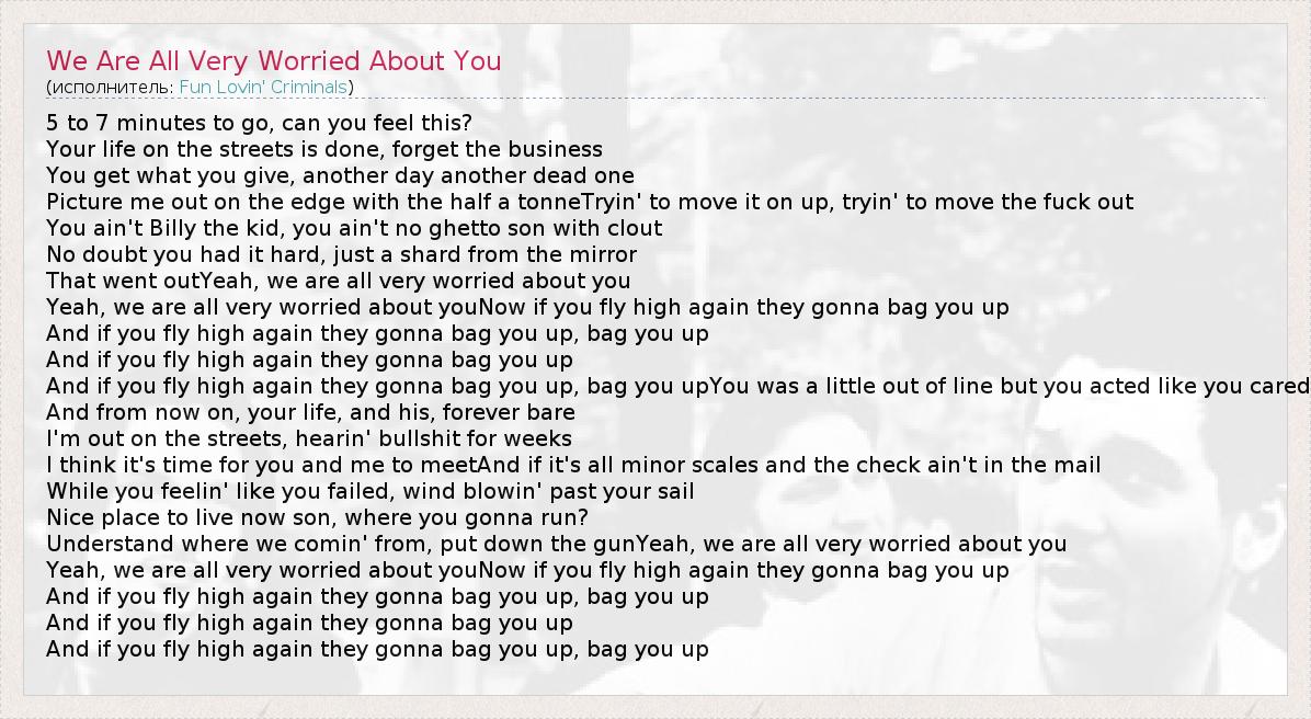 ГлавнаяИсполнителиFun Lovin' CriminalsWe Are All Very Worried About You