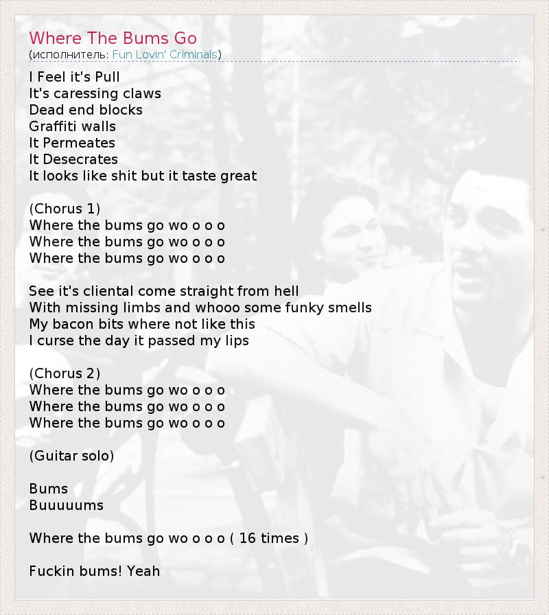А как ты думаешь, о чем песня "Where The Bums Go" ?