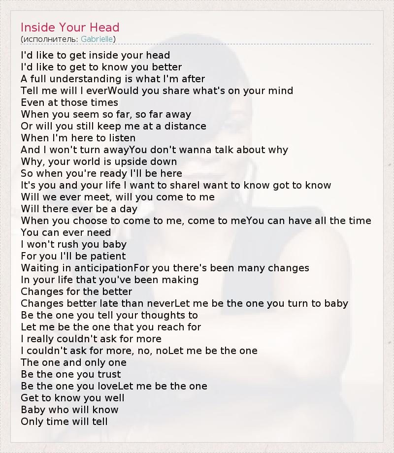 А как ты думаешь, о чем песня "Inside Your Head" ?