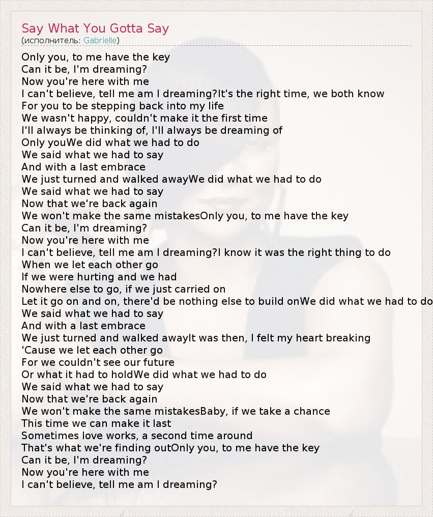 ГлавнаяИсполнителиGabrielleSay What You Gotta Say